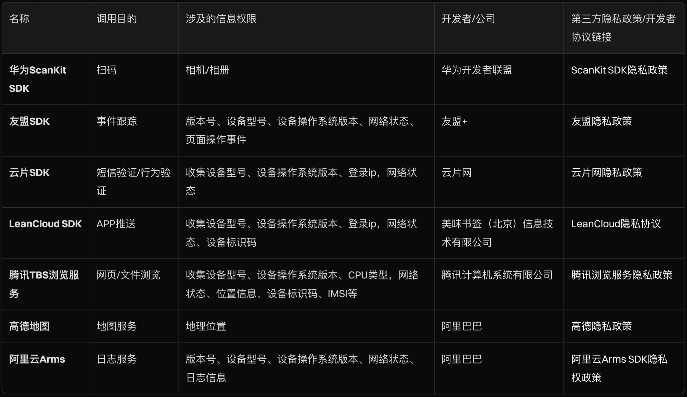 本应用使用了如下第三方SDK,SDK和应用本身因为功能需要和数据优化会请求相应的设备权限: